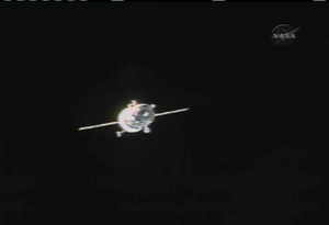 Запись трансляции стыковки по NASA TV, хорошо видно как сильно Прогресс раскачивается при стягивании