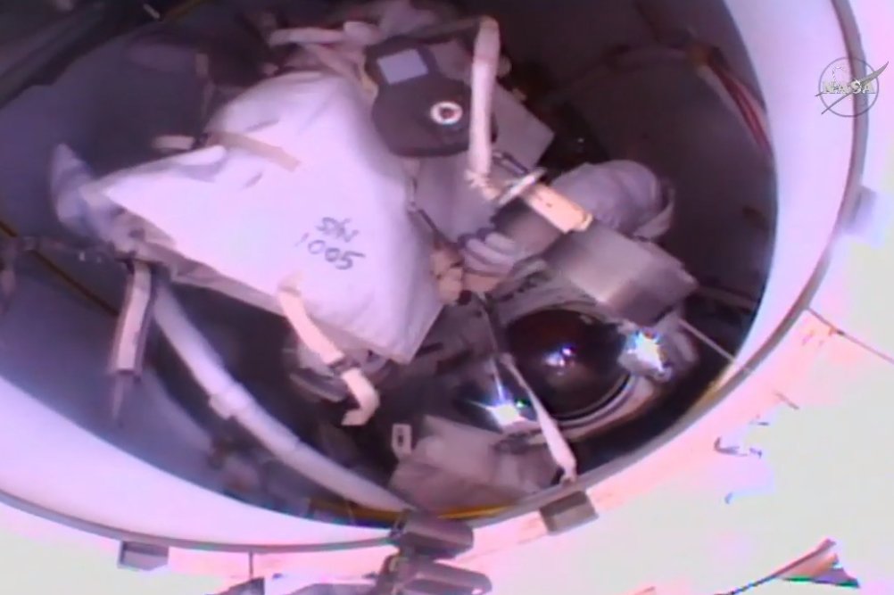 Vande Hei going back inside the Quest airlock; Bresnik about to head back from ESP-2
