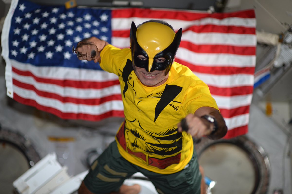 We can't have sharp objects up here on @Space_Station, so Space Wolverine played by @Astro_Sabot has spoons that come out of his hands!