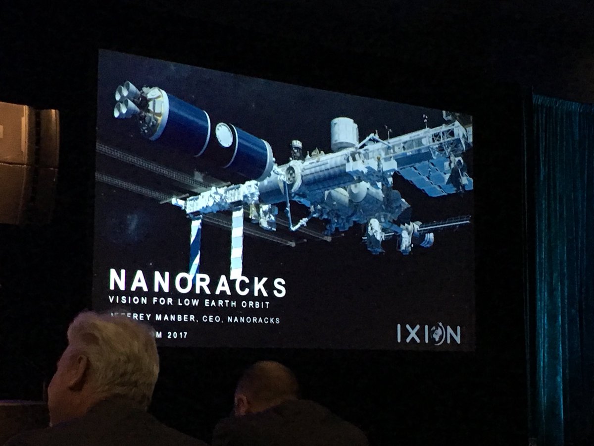 Manber showed this new illustration of the Ixion module being added to the ISS. #SpaceComExpo