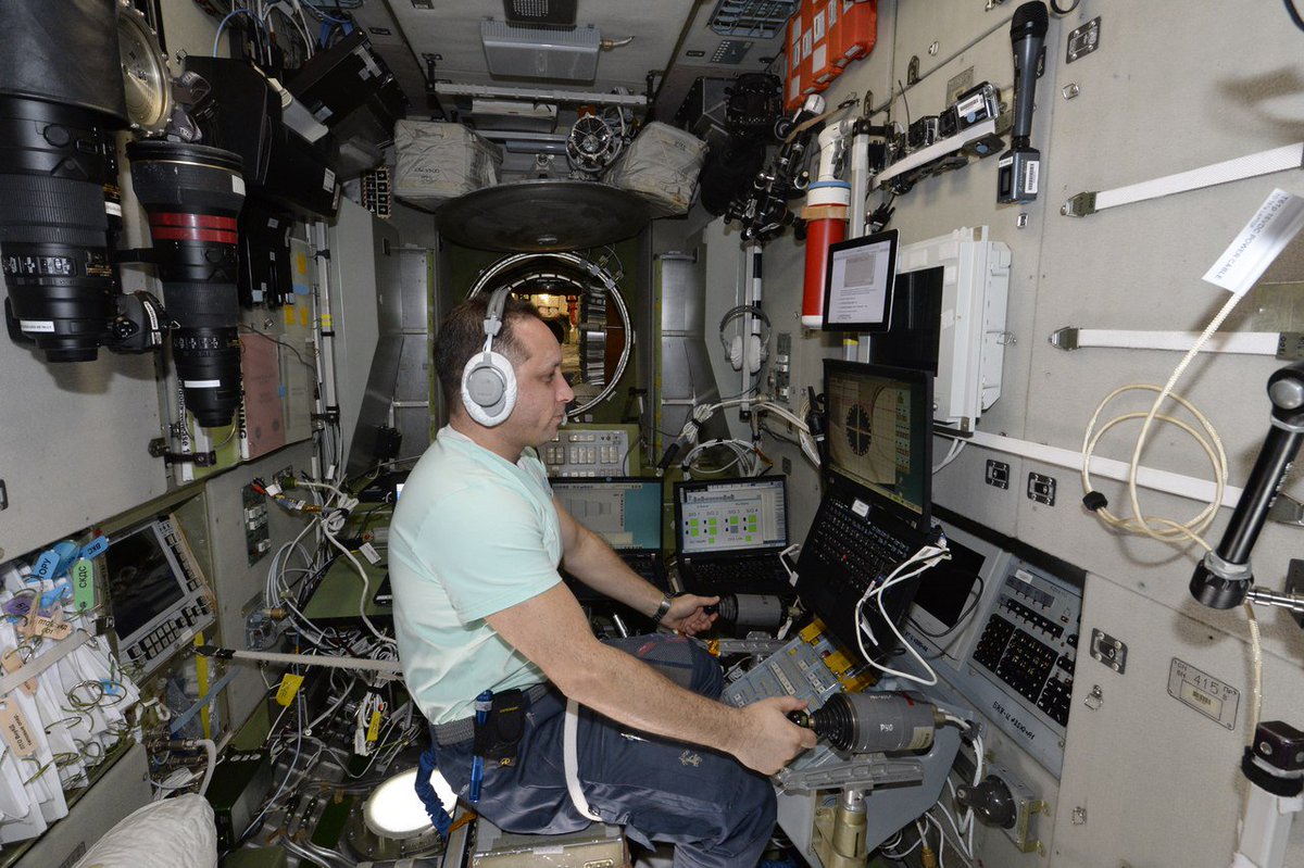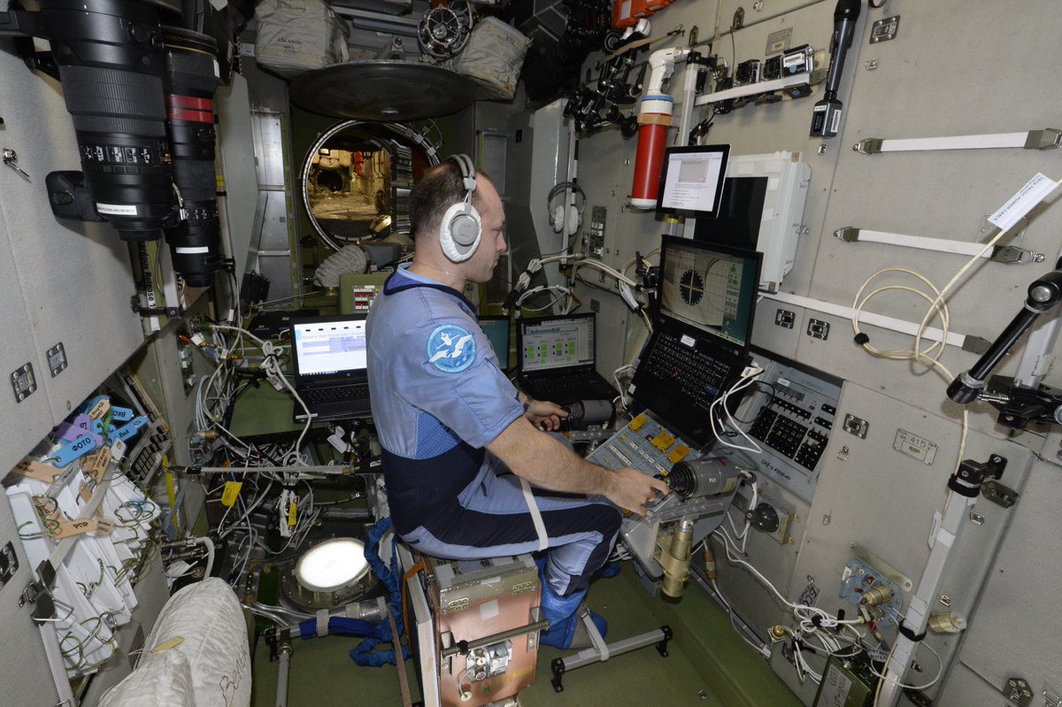 Сегодня с Сан Санычем проходили тренировки по ТОРУ (телеоператорный режим управления) перед стыковкой с кораблем «Прогресс».Проводится она на случай сбоя в автоматической системе управления корабля.При таких обстоятельствах мы должны быть готовы вручную осуществить стыковку с МКС