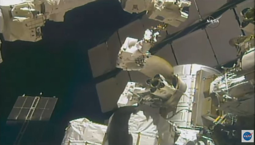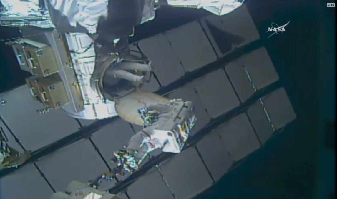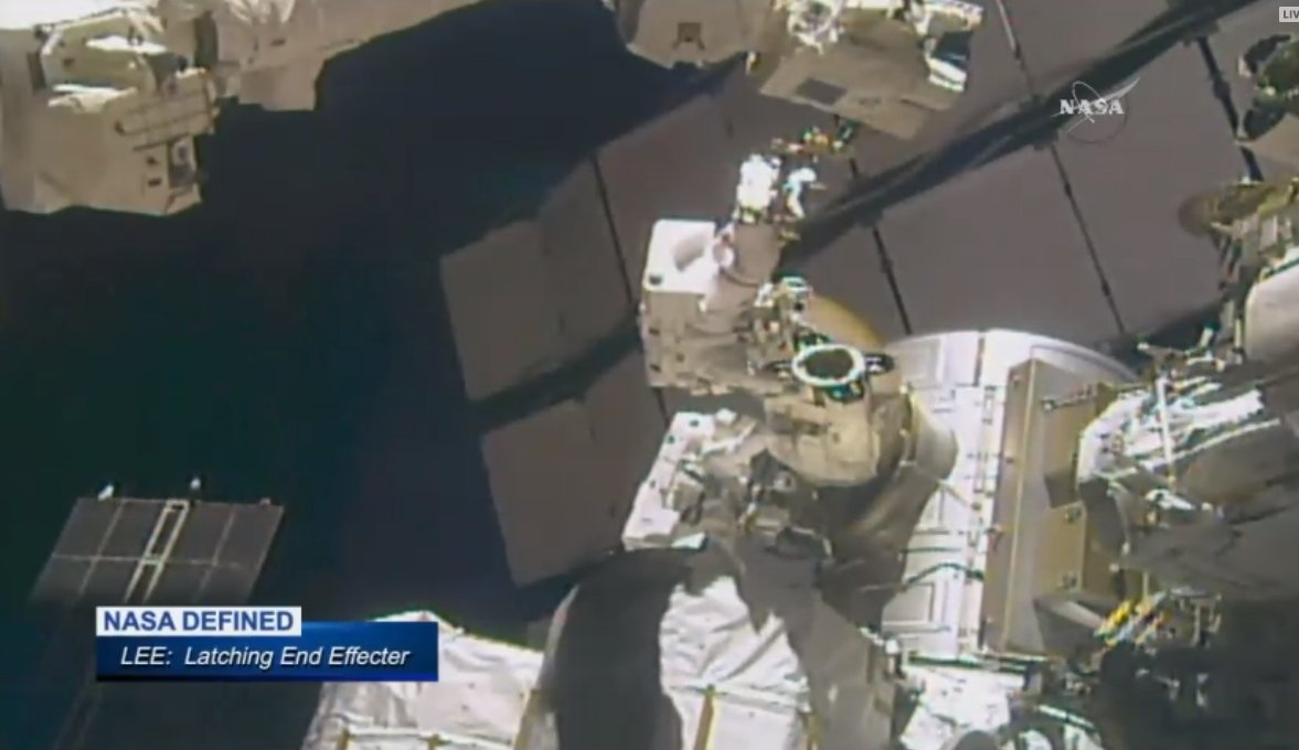 There's the removed LEE, which is being taken inside the Quest Airlock ahead of its ride back to Earth in the belly of a Dragon.