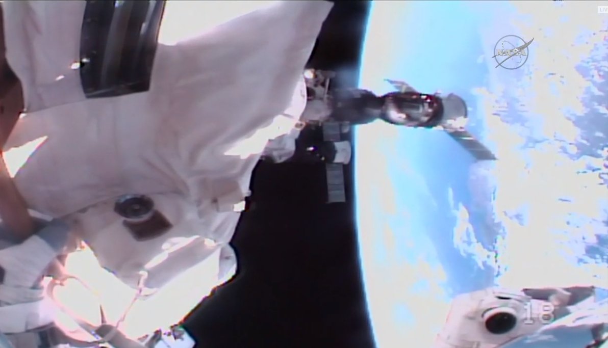 .@Astro_Kanai competes the first spacewalk task and stows an older Canadarm2 robotic hand inside the Quest airlock.