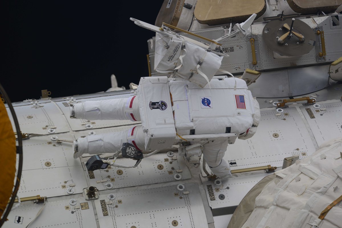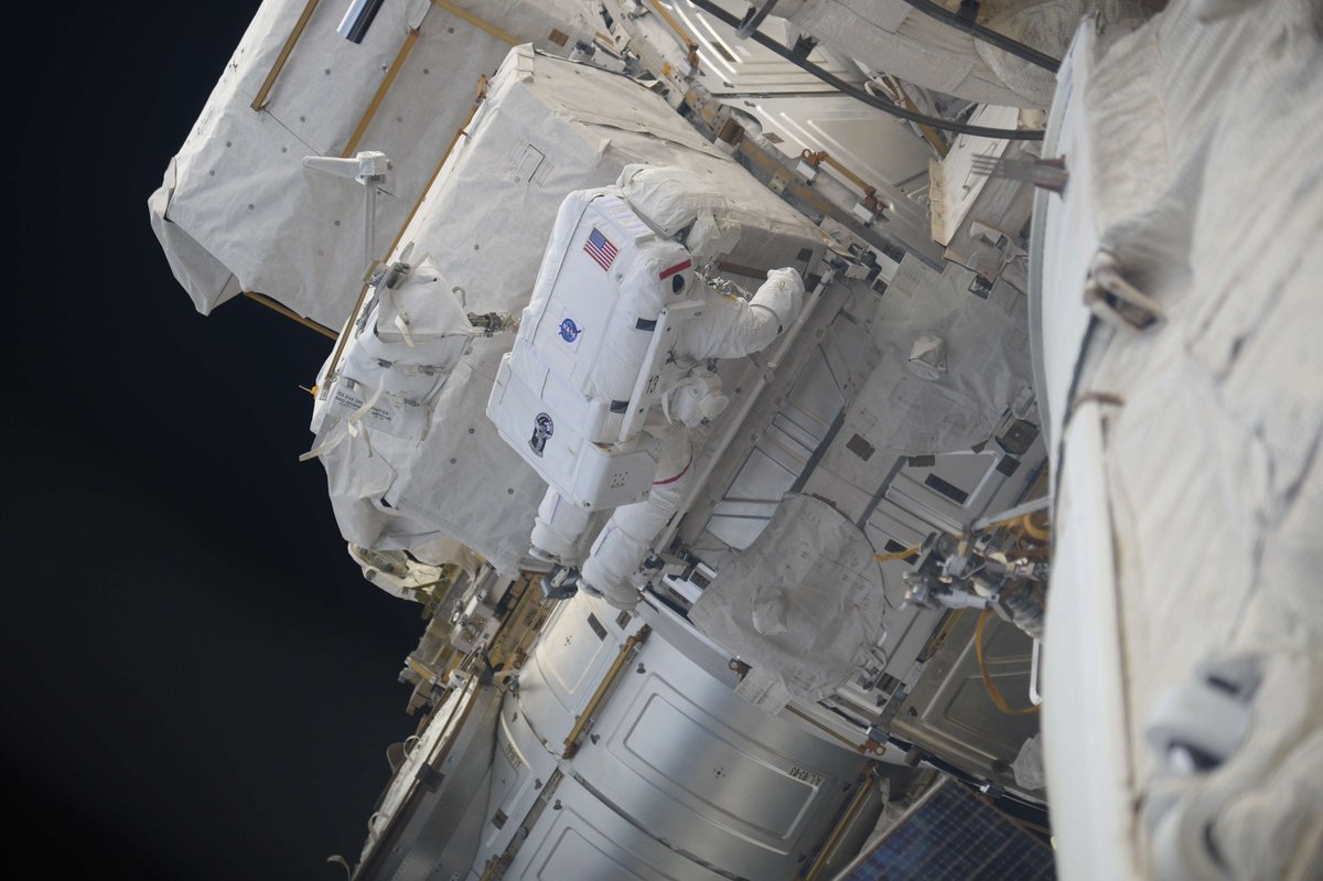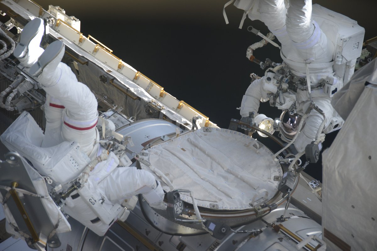 .@Astro_Feustel и @astro_ricky сейчас работают за пределами Международной космической станции.