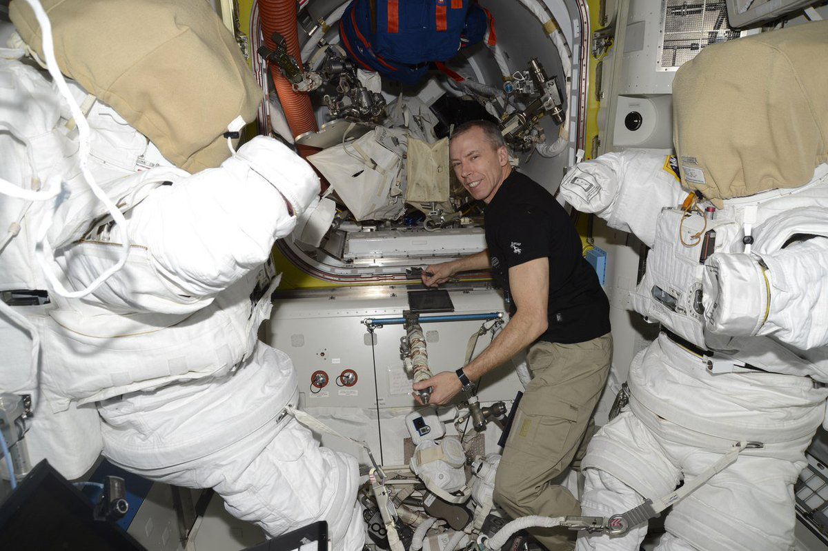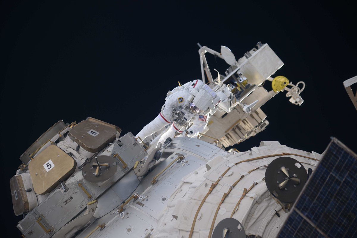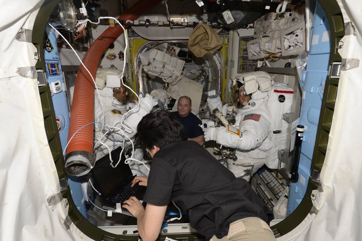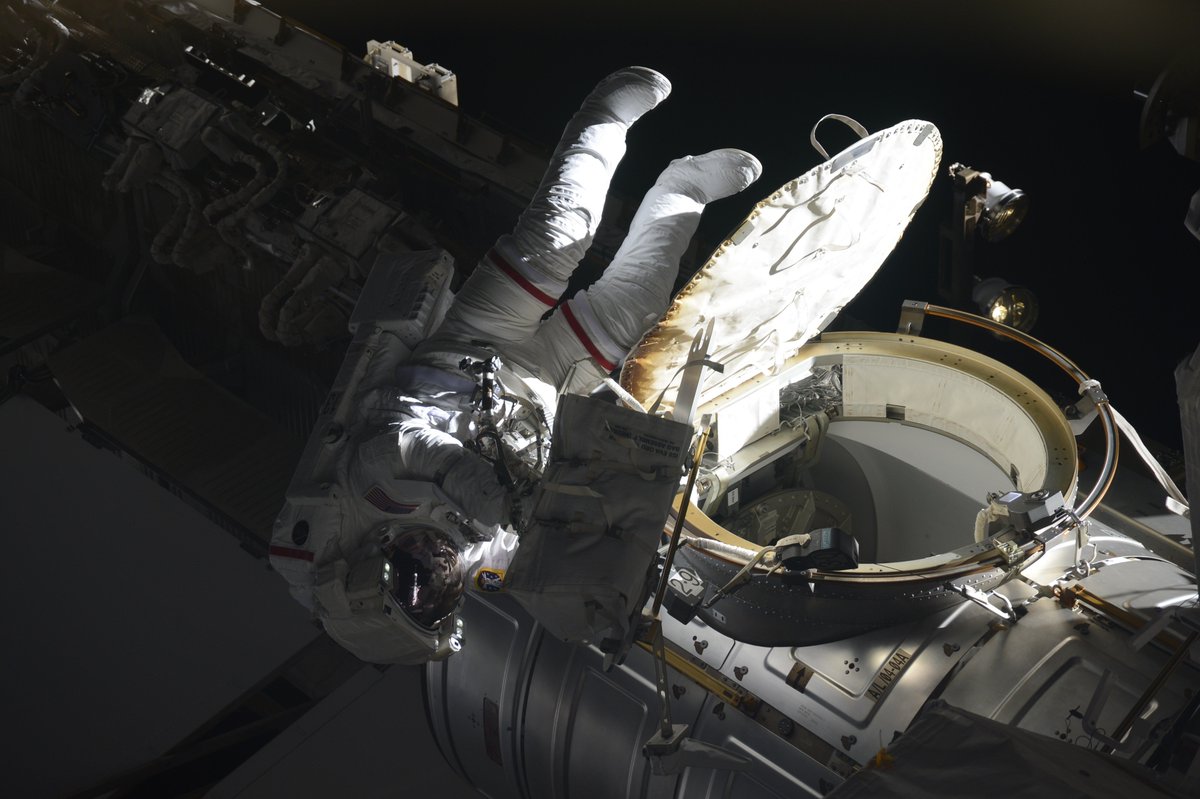 .@Astro_Feustel и @astro_ricky сейчас работают за пределами Международной космической станции.