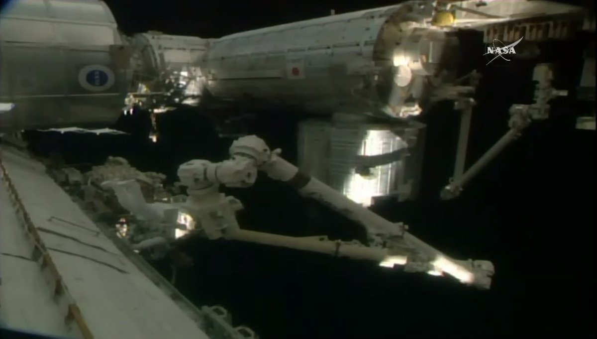Robotic arms: SSRMS on the left. JEM RMS on the right.