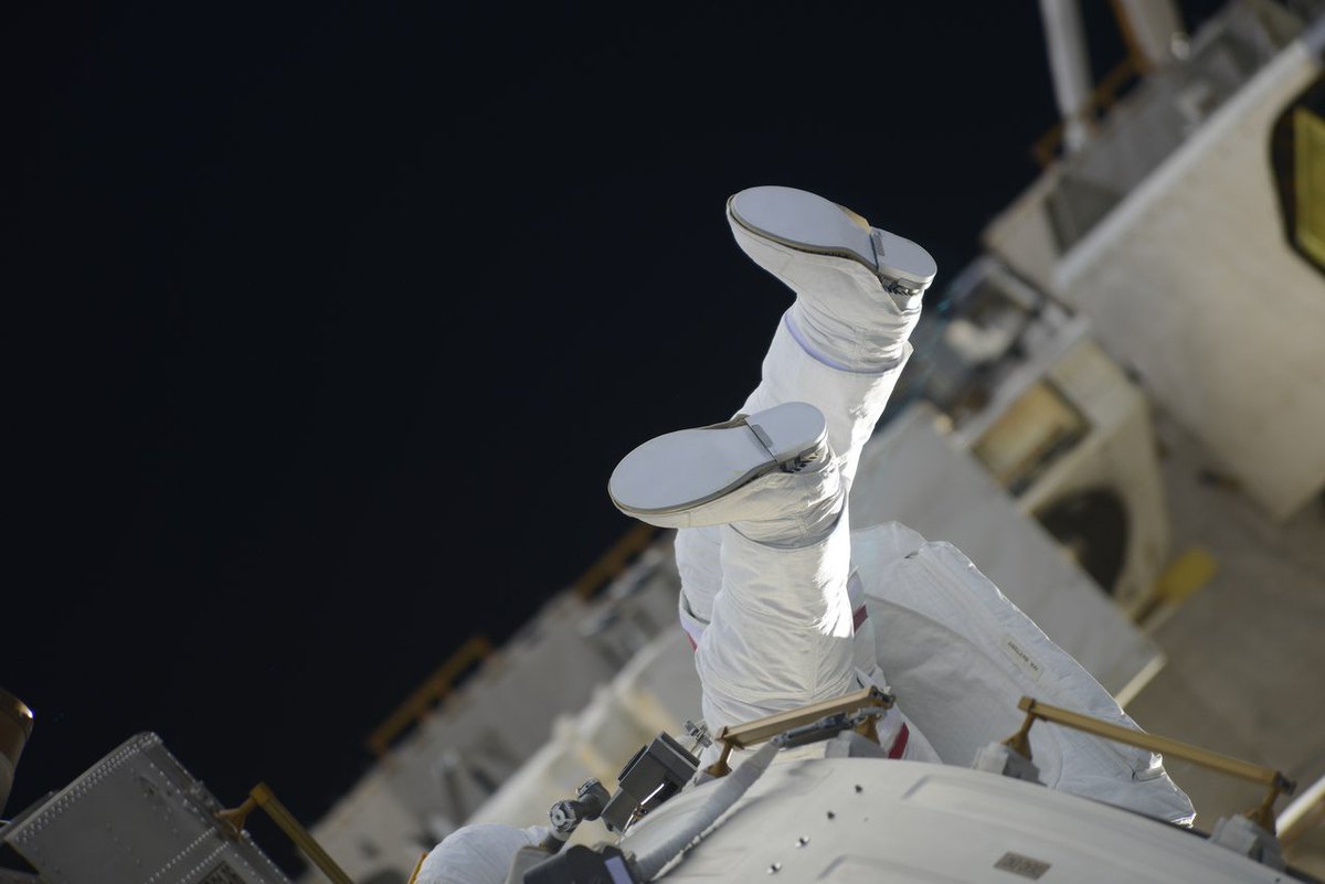 Shuffling the EVA task list. @Astro_Feustel completed a video inspection of a Pump Flow Control Subassembly that will be moved during EVA-50 and he'll now relocate an unused ammonia jumper from inside the S0 truss over to External Stowage Platform 1.