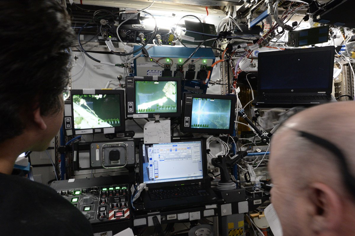 Japanese astronaut Norishige Kanai will be inside the cupola operating the Canadarm2 robotic arm when he grapples Dragon around 7 a.m. Wednesday. Flight Engineer Scott Tingle will assist Kanai and monitor the cargo ship's arrival until it reaches its capture point about 10 meters away from the station. Both astronauts were on a computer today practicing the procedures they will use in the moments before they capture Dragon next week.