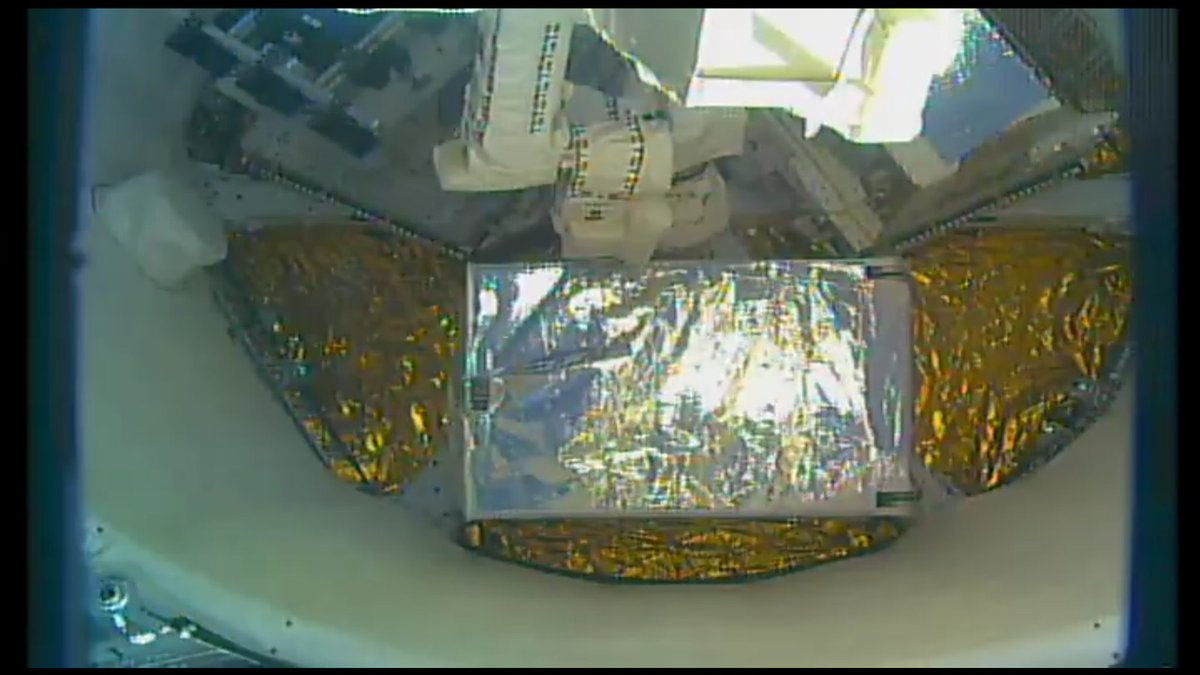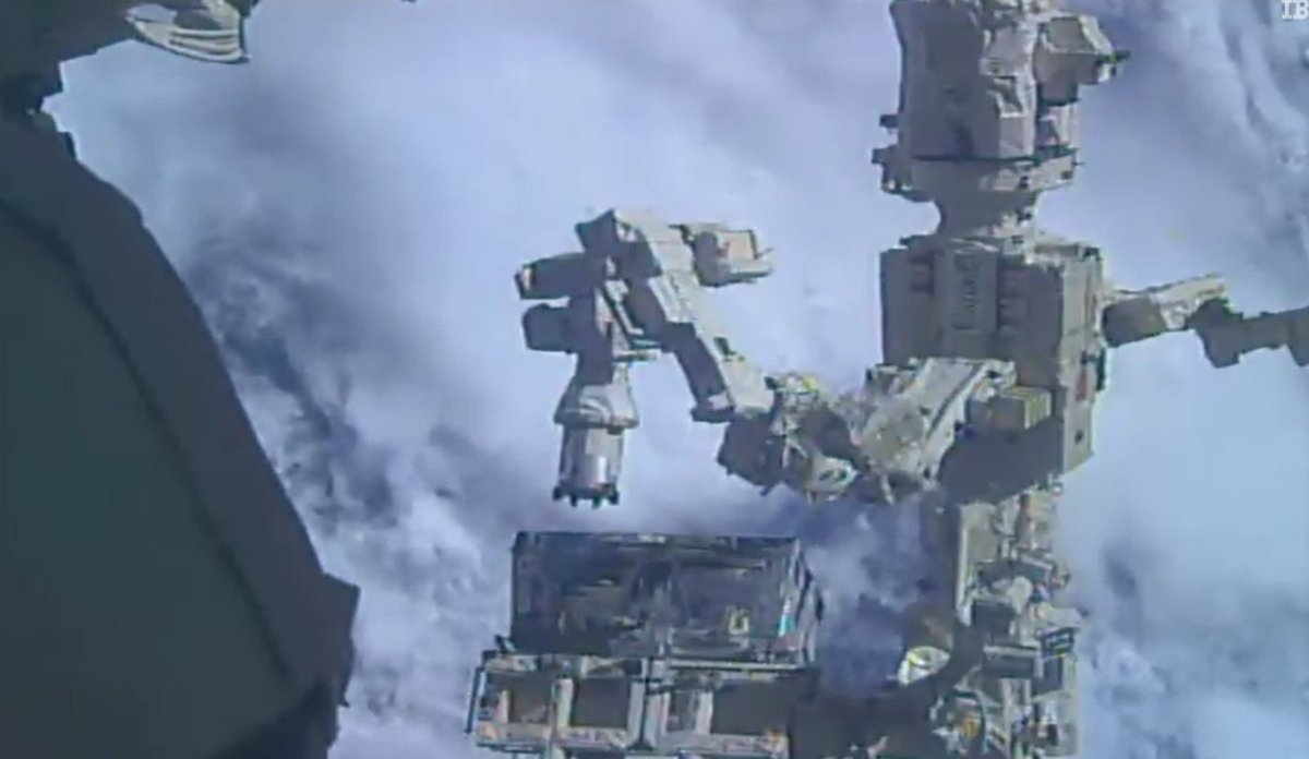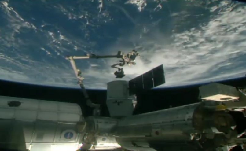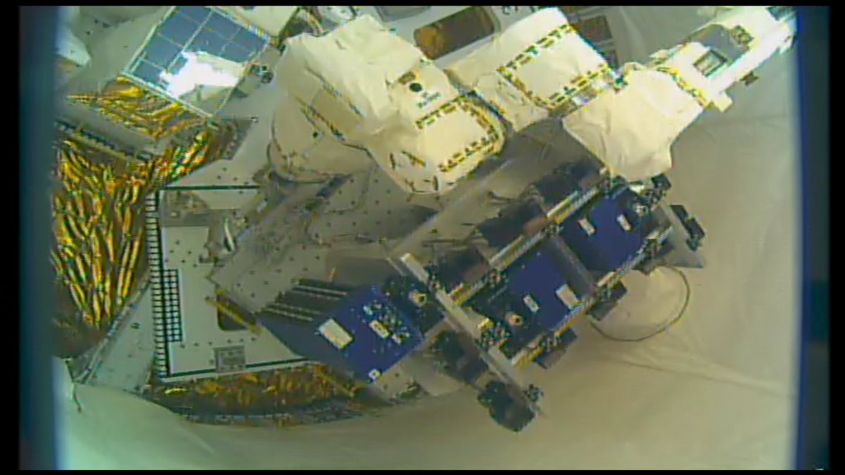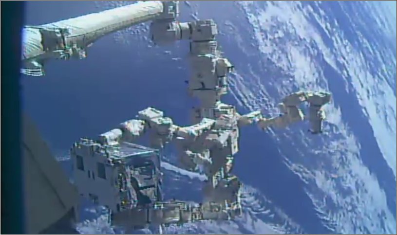 Aboard ISS, Dextre now transferring one of the Dragon trunk payloads to its install location. Think this might be PFCS but could be MISSE-FF?