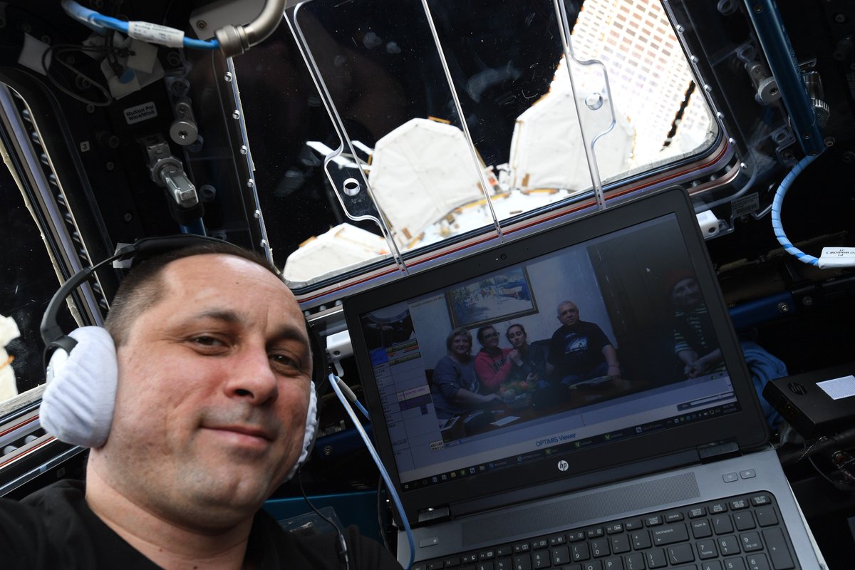 Часто спрашивают: "Как вы связываетесь с семьей?". У каждого на #МКС есть спутниковый телефон. Можно звонить в любую точку мира, достаточно знать номер телефона и иметь свободное время. А по выходным у нас проходят приватные видеоконференции, похожие на звонки через Skype