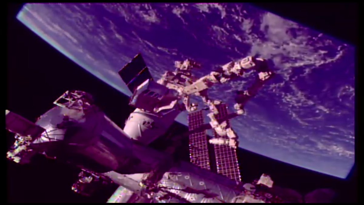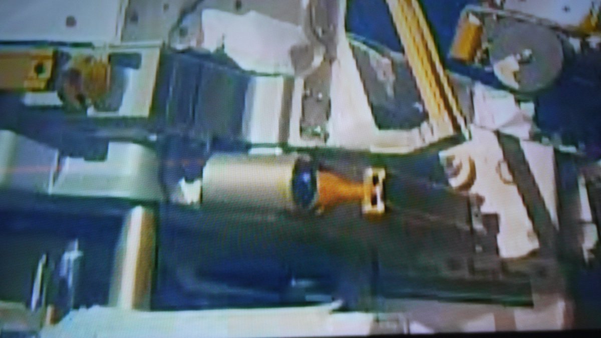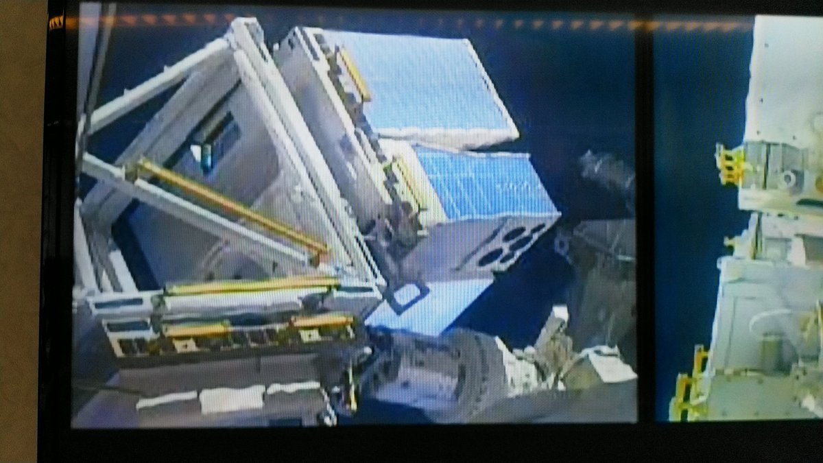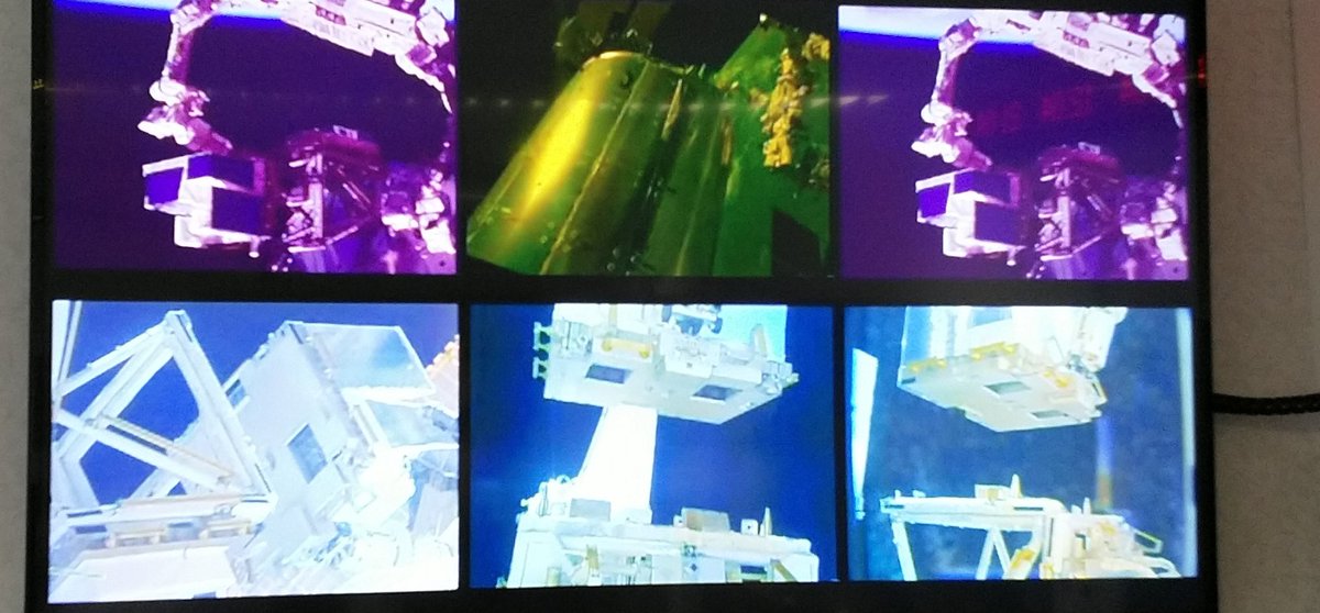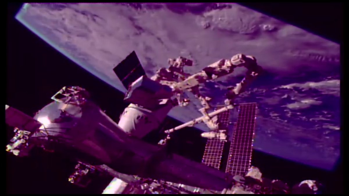 #SpaceStormHunter has engaged with the golden guiding pin (left) – smooth operating with the @Space_Station's robotic arm.
