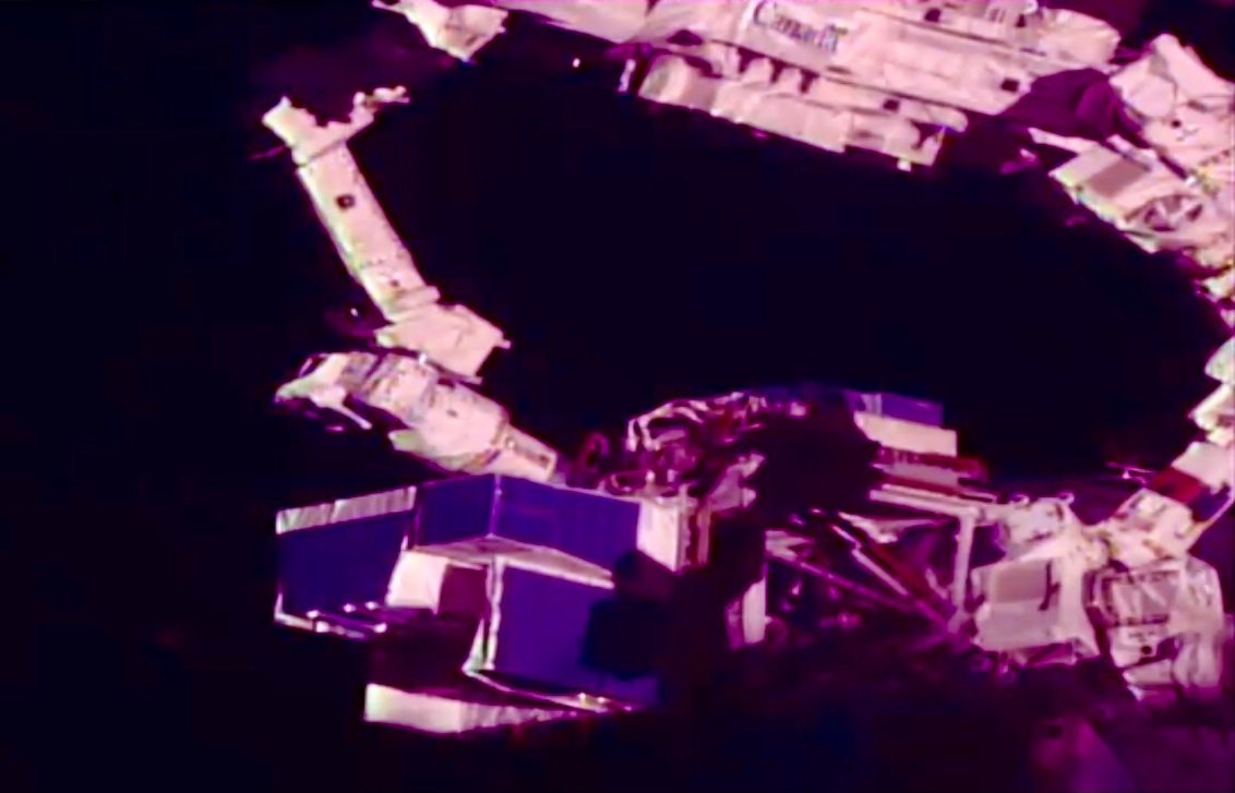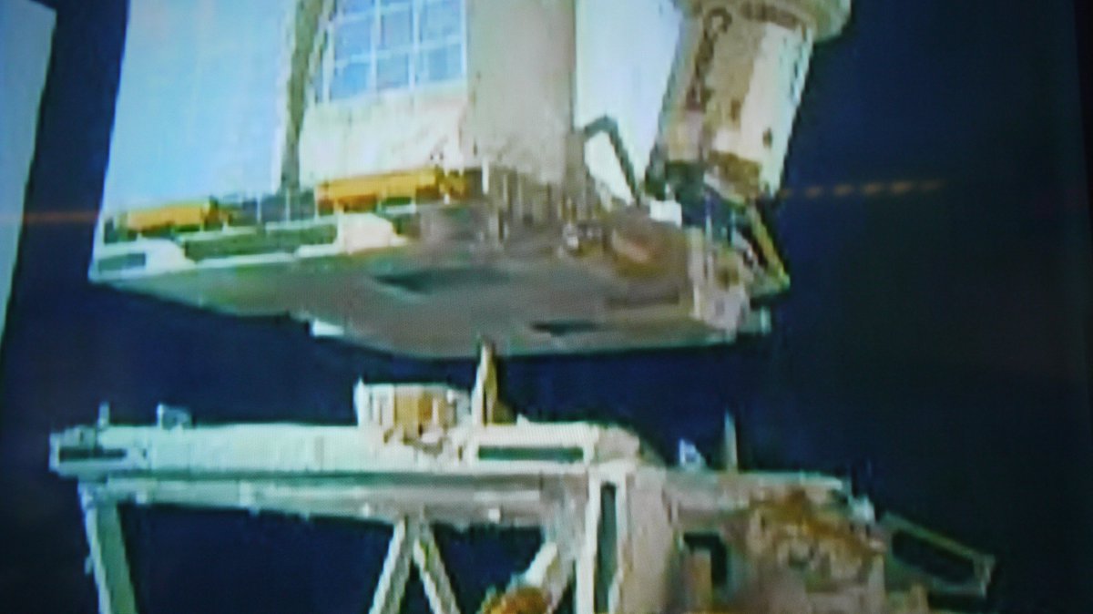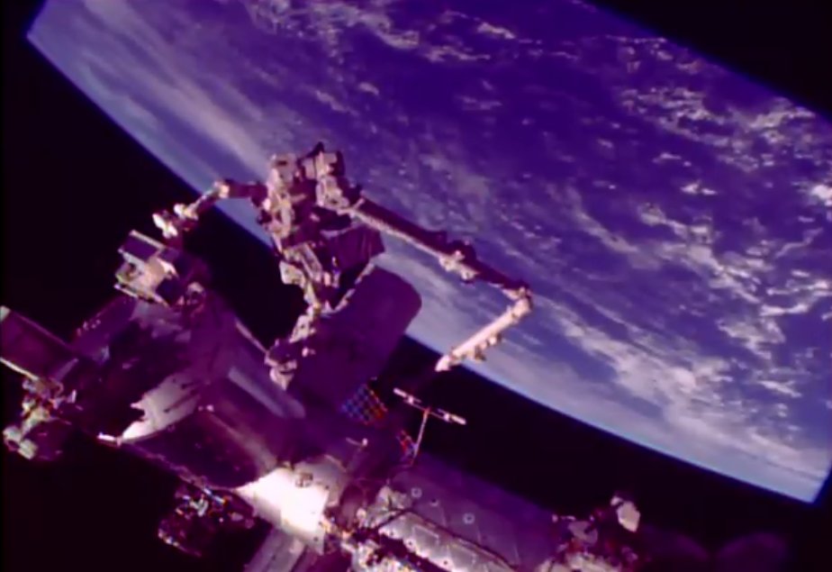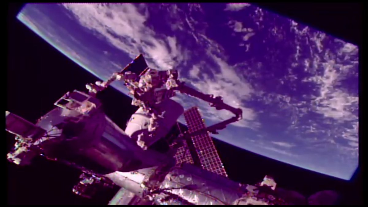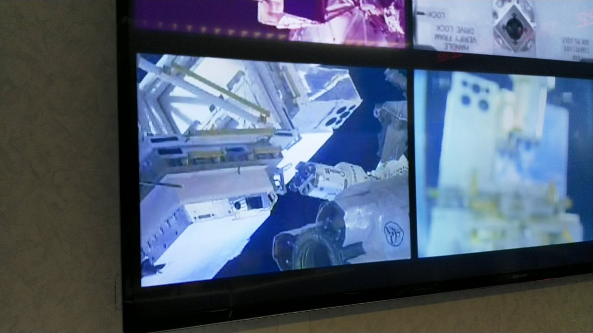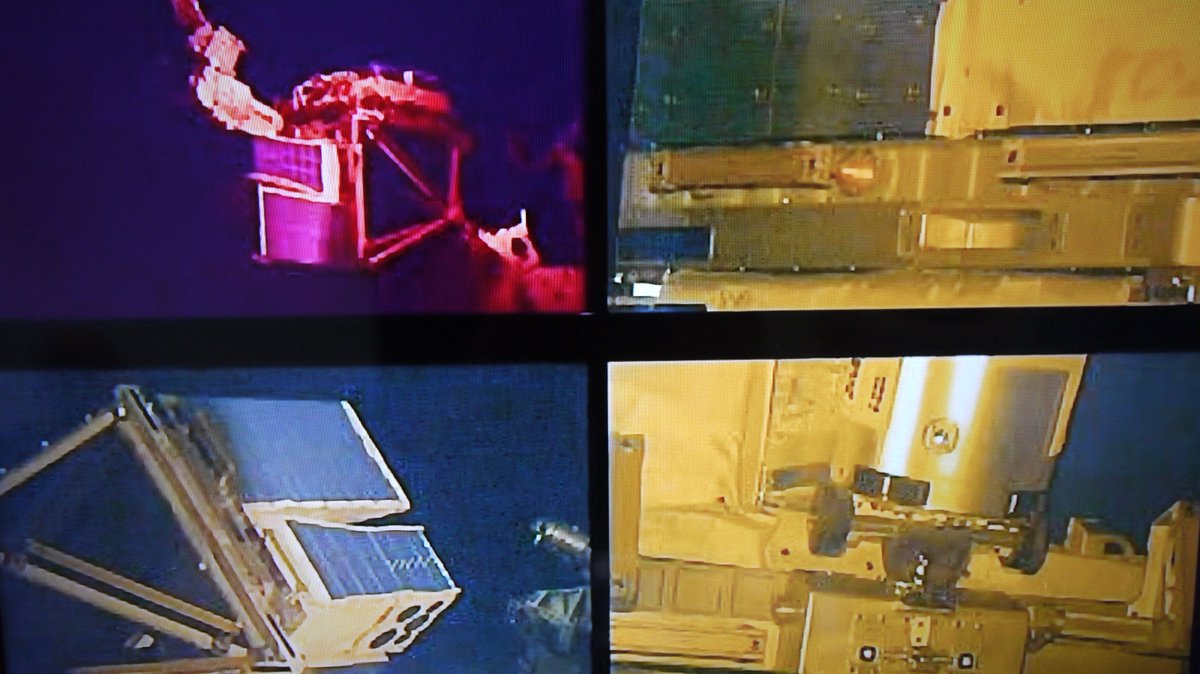 #SpaceStormHunter has engaged with the golden guiding pin (left) – smooth operating with the @Space_Station's robotic arm.