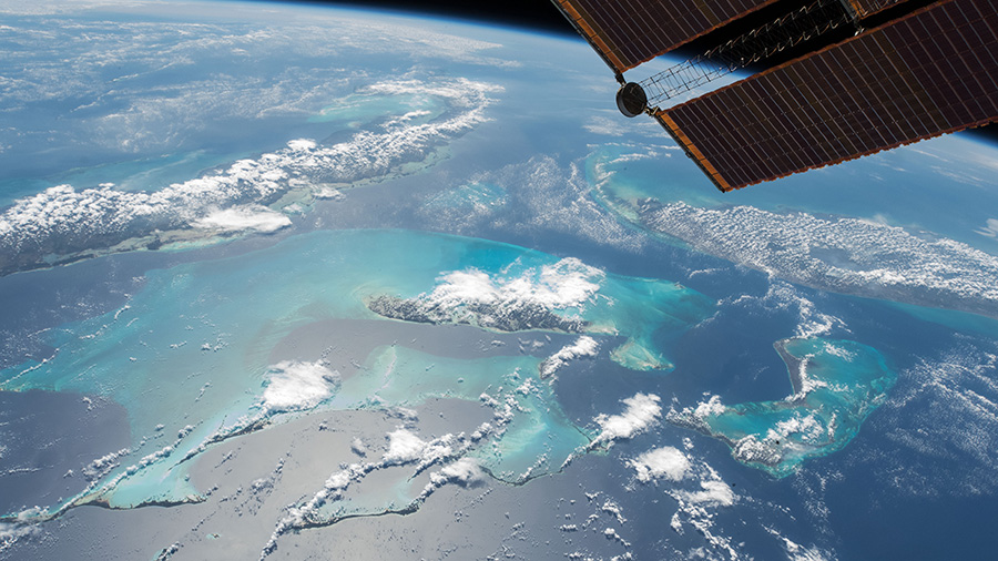 The clear blue waters surrounding the islands of the Bahamas were pictured April 4, 2018 from an Expedition 55 crew member aboard the space station.