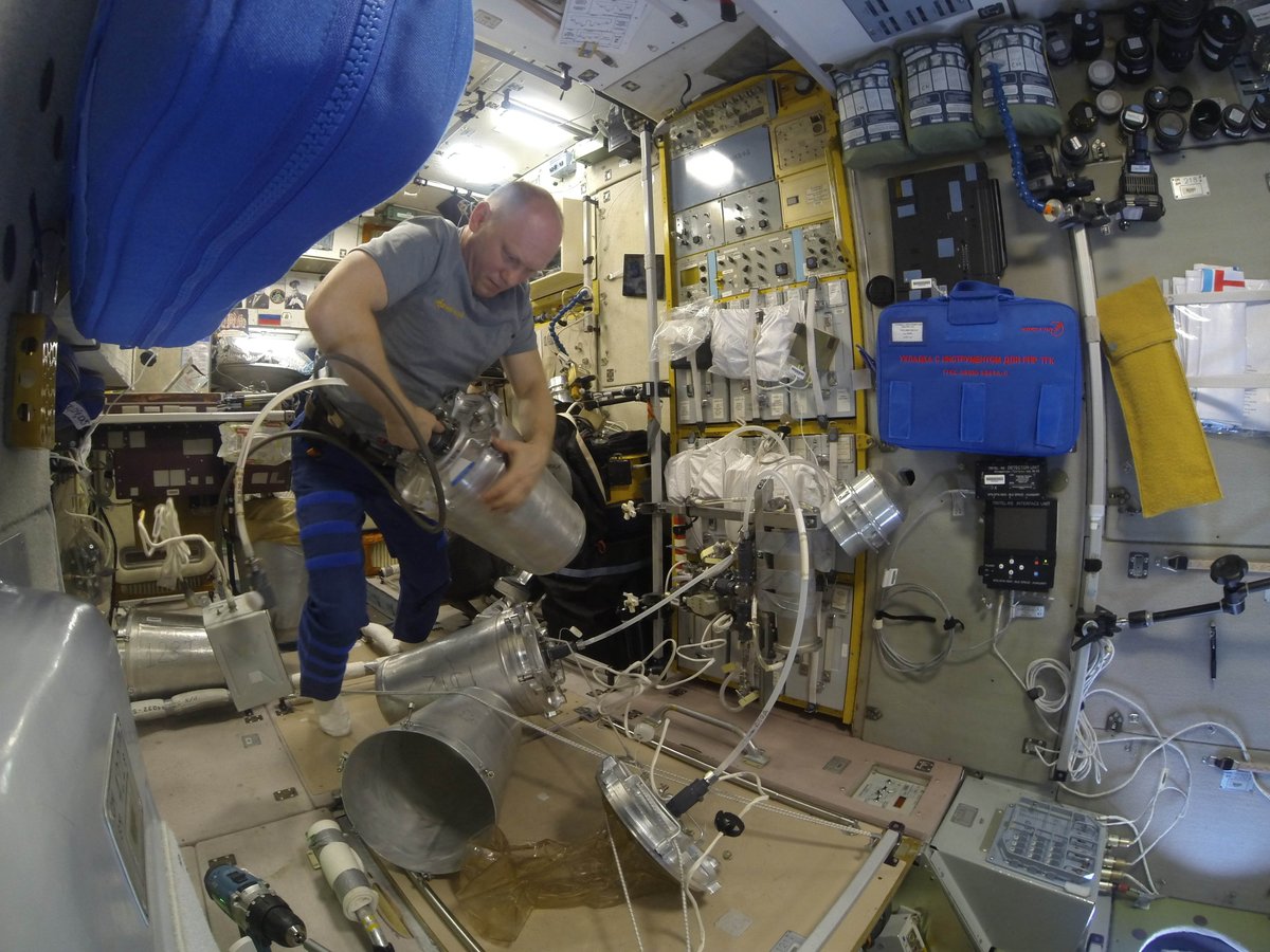 С апреля начали работать над экспериментом "Сепарация". Очень интересная и обьемная работа, получили из урины первую чистую воду на российском сегменте МКС. Подробнее об эксперименте рассказываю здесь - https://goo.gl/PeMLgf