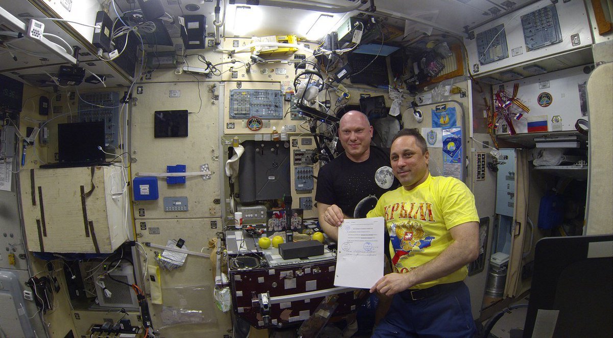 Shkaplerov conducted a record-setting spacewalk in February with fellow cosmonaut Alexander Misurkin to replace an electronics box for a communications antenna on the Zvezda service module. The spacewalk timed out at 8 hours and 13 minutes – the longest in Russian space program history.