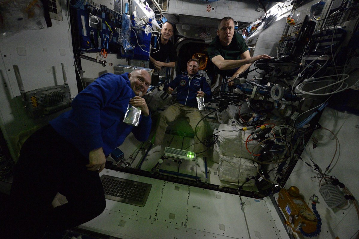 Вот нас снова и шестеро на #МКС! Очень-очень ждали наших коллег и друзей. Сергей, @Astro_Alex и @AstroSerena, добро пожаловать на борт!