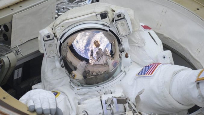 Astronaut Ricky Arnold exits the Quest airlock beginning the sixth spacewalk of 2018. Credit: @OlegMKS