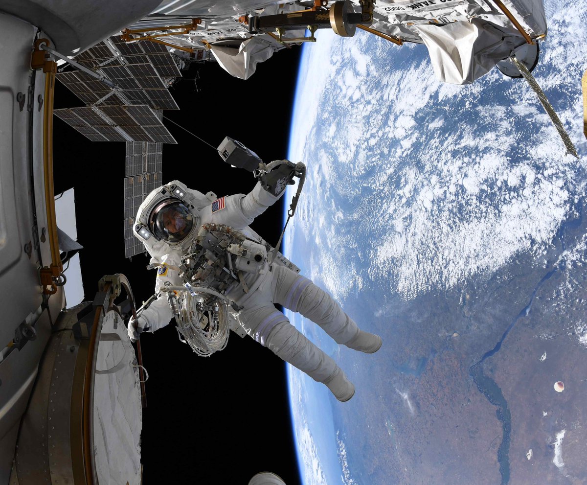 It was the fifth spacewalk overall for Arnold and the ninth for Feustel, who now ranks third in the world, logging a total of 61 hours and 48 minutes across nine EVAs. The all-time record is held by Anatoly Solovyev, who logged 78 hours and 21 minutes of spacewalk time during 16 excursions.
