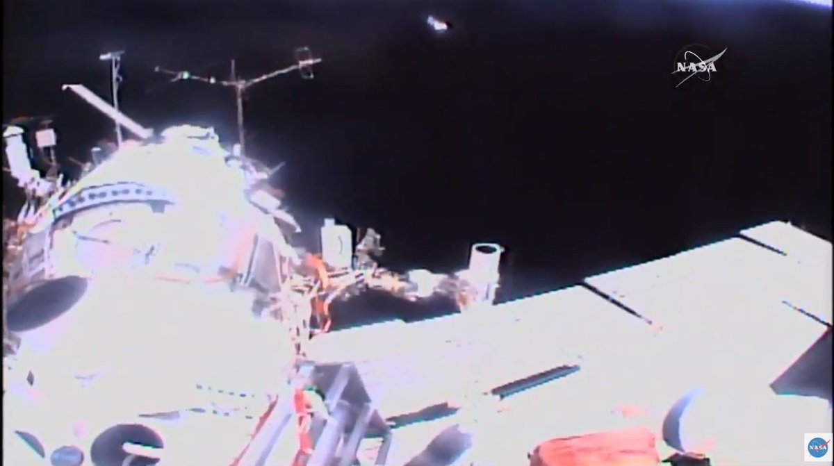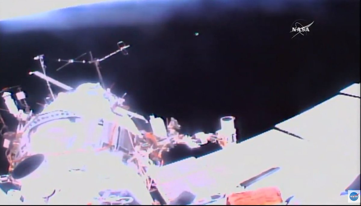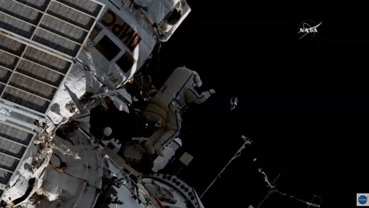 #ВКД45: во время выхода в открытый космос Олег Артемьев (@OlegMKS) и Сергей Прокопьев в ручном режиме запустили четыре наноспутника Трансляция - http://online.roscosmos.ru