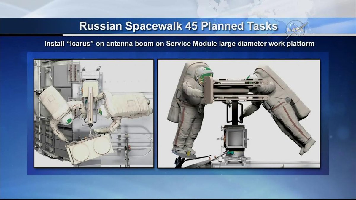 The spacewalking cosmonauts Oleg Artemyev and Sergey Prokopyev are working to install the Icarus animal-tracking experiment supported by @DLR_en and @Roscosmos space agencies. #AskNASA https://www.nasa.gov/live