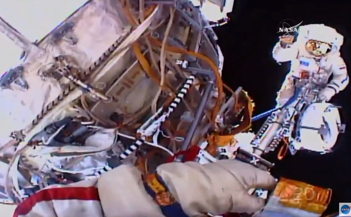 #ВКД45: Олег Артемьев (@OlegMKS) и Сергей Прокопьев завершили выход в открытый космос, проработав за пределами Международной космической станции 7 часов 46 минут