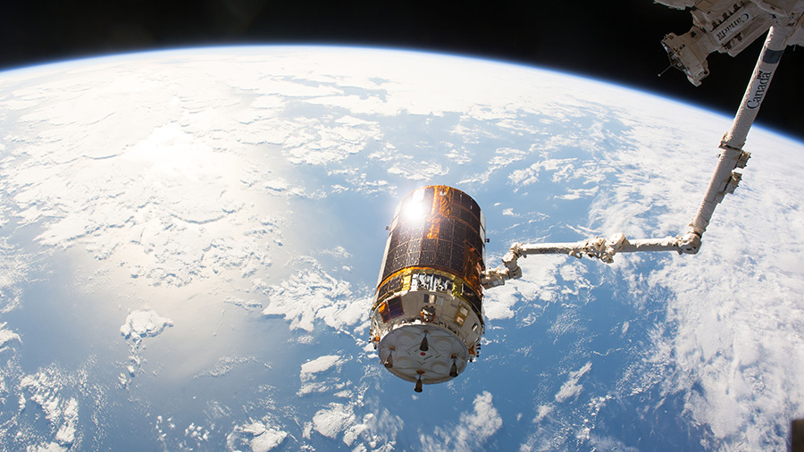 Japan's last cargo craft, the HTV-6, is pictured in the grips of the Canadarm2 moments before its release ending its stay Jan. 27, 2017, at the International Space Station.
