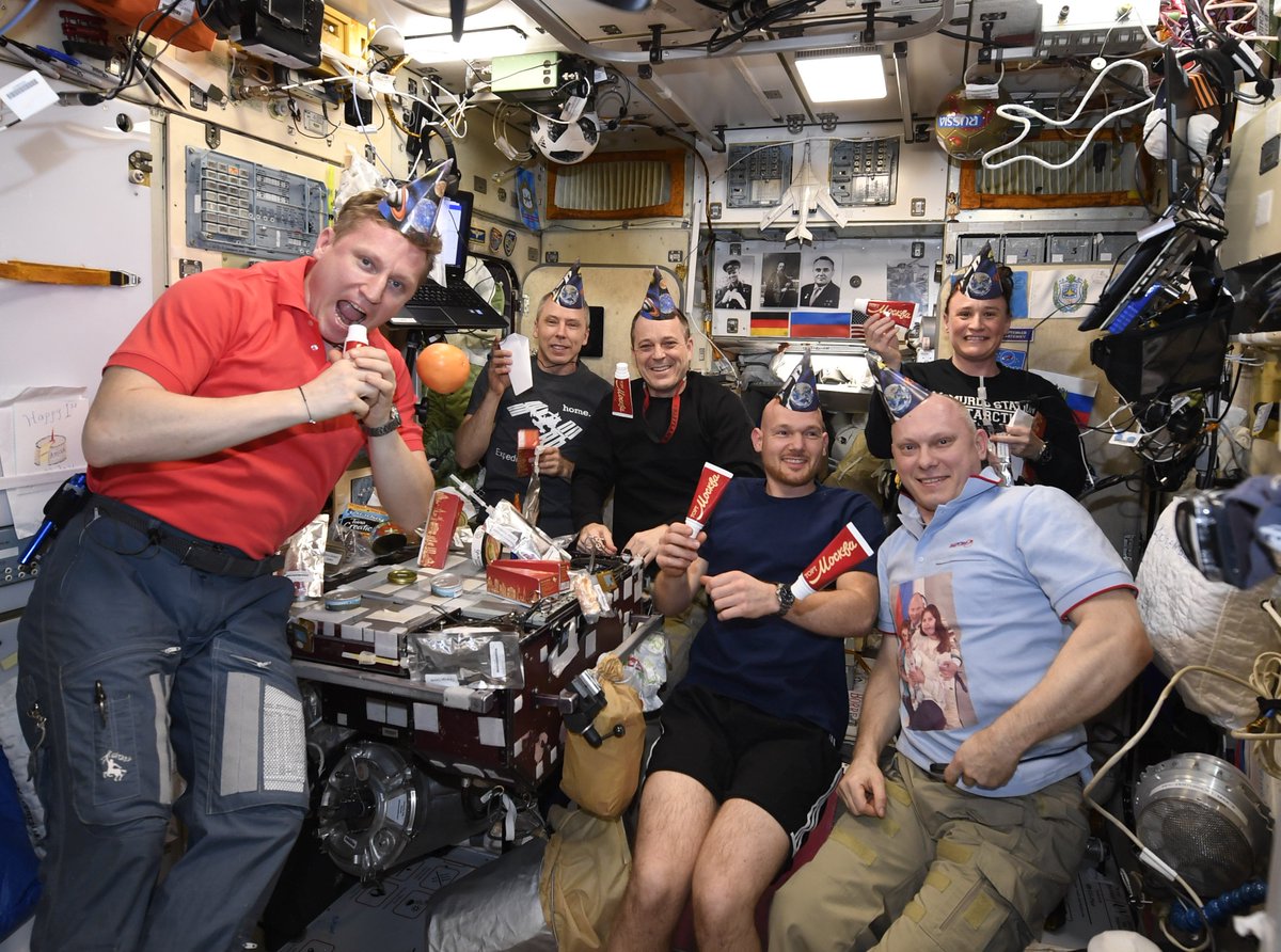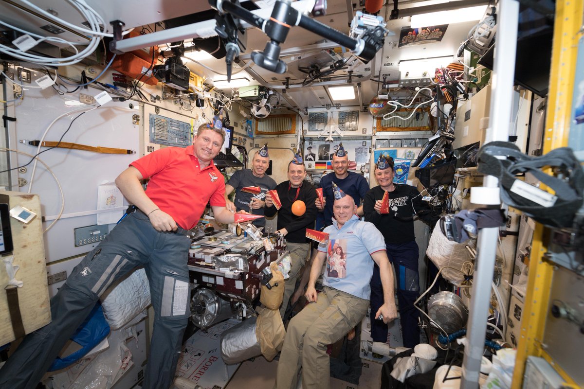 Our multinational family on @Space_Station celebrating a milestone on Earth.