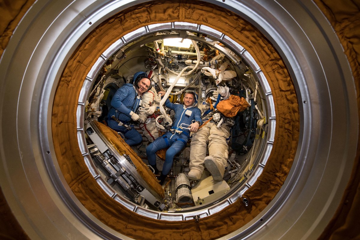 The entire Expedition 56 crew did manage to conduct a variety of science experiments exploring biology and physics in microgravity. The astronauts researched how mice adapt to space and swabbed their own bodies to collect microbe samples for analysis. The crew also studied liquid atomization and the composition of meteorites entering Earth's atmosphere.