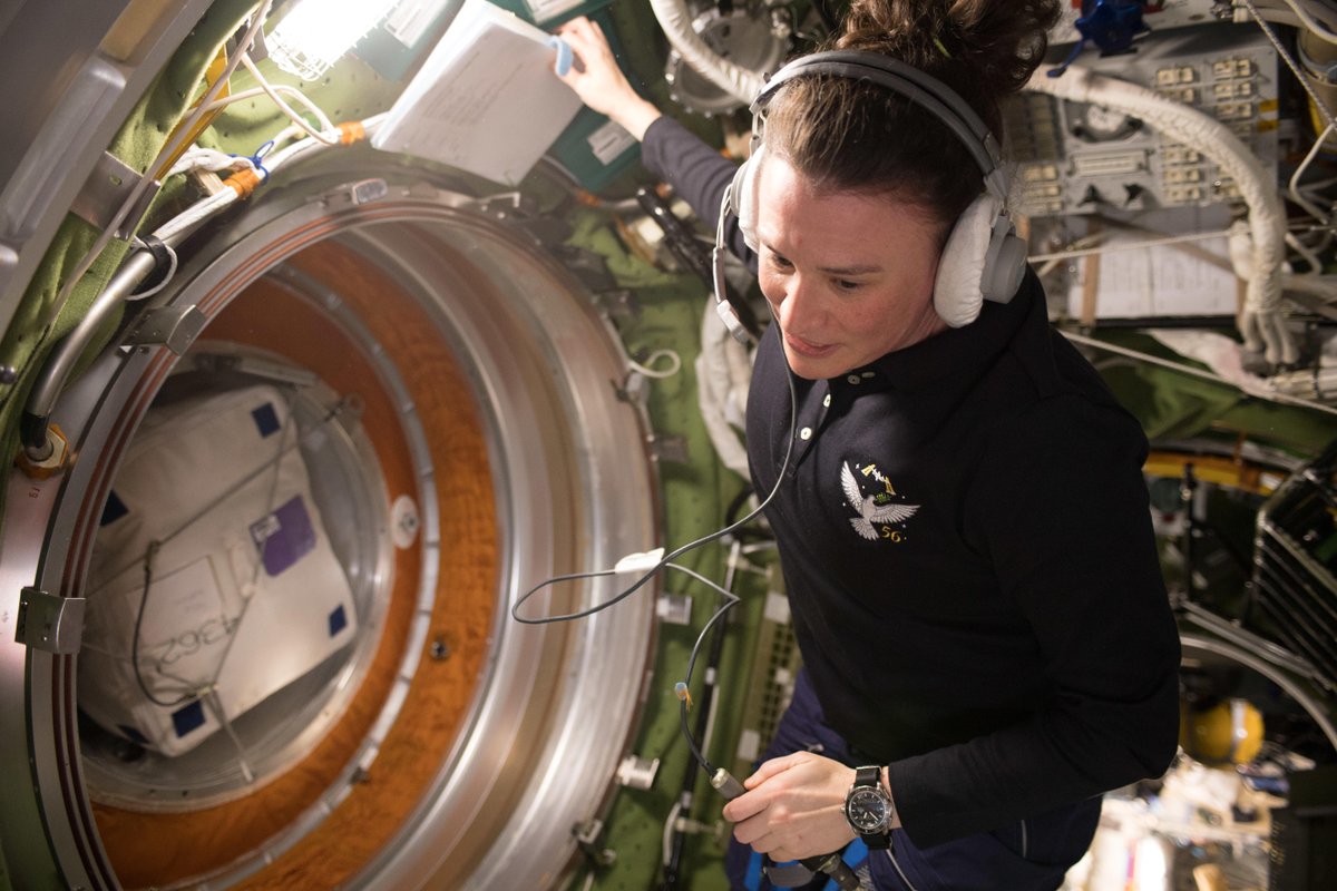 Gerst, Feustel and Arnold spent a couple of hours today reviewing their upcoming spacewalk procedures and discussing their concerns with specialists on the ground. Flight Engineer Serena Auñón-Chancellor cleaned the trio's spacesuits' cooling loops and refilled the suits' water tanks.