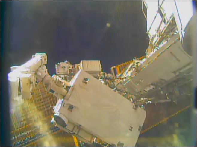 The station is being replenished today as the crew begins offloading cargo from the HTV-7 resupply ship from JAXA (Japan Aerospace Exploration Agency). Robotics controllers will soon unload new lithion-ion batteries packed inside HTV-7 and install them on the truss structure to upgrade the station's power systems. A pair of spacewalks are planned before the end of the month to complete the battery connections.