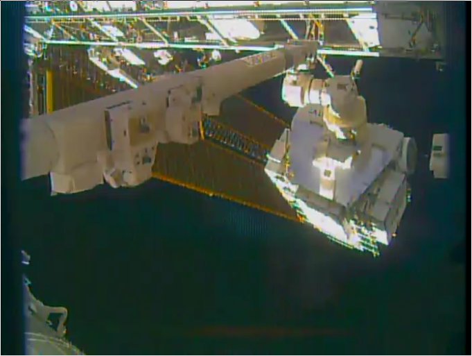 Friday night, the Robotics Ground Controllers extracted the External Platform (EP) from HTV-7 and installed it on the Mobile Base System (MBS) Payload/Orbit Replaceable Unit (ORU) Accommodation (POA). Next, they walked SSRMS off from Node2 Power Data Grapple Fixture (PDGF) onto Mobile Base System (MBS) PDGF4. When performing the base change, data was collected to capture the rigidization tension on both Latching End Effectors (LEEs). They then unstowed the Special Purpose Dexterous Manipulator (SPDM) from the Lab PDGF, completing initial operations to configure the MSS for the HTV-7 Battery Remove & Replace operations scheduled in mid-October. Tonight, Robotics Ground Controllers will be performing a Mobile Transporter (MT) translation to Worksite (WS)7.