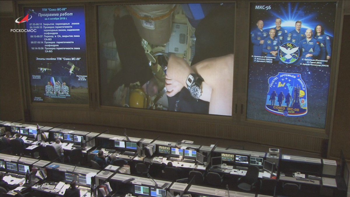 The hatches between the Soyuz MS-08 spacecraft and the ISS are closed. Undocking is planned at 07:57 UTC.