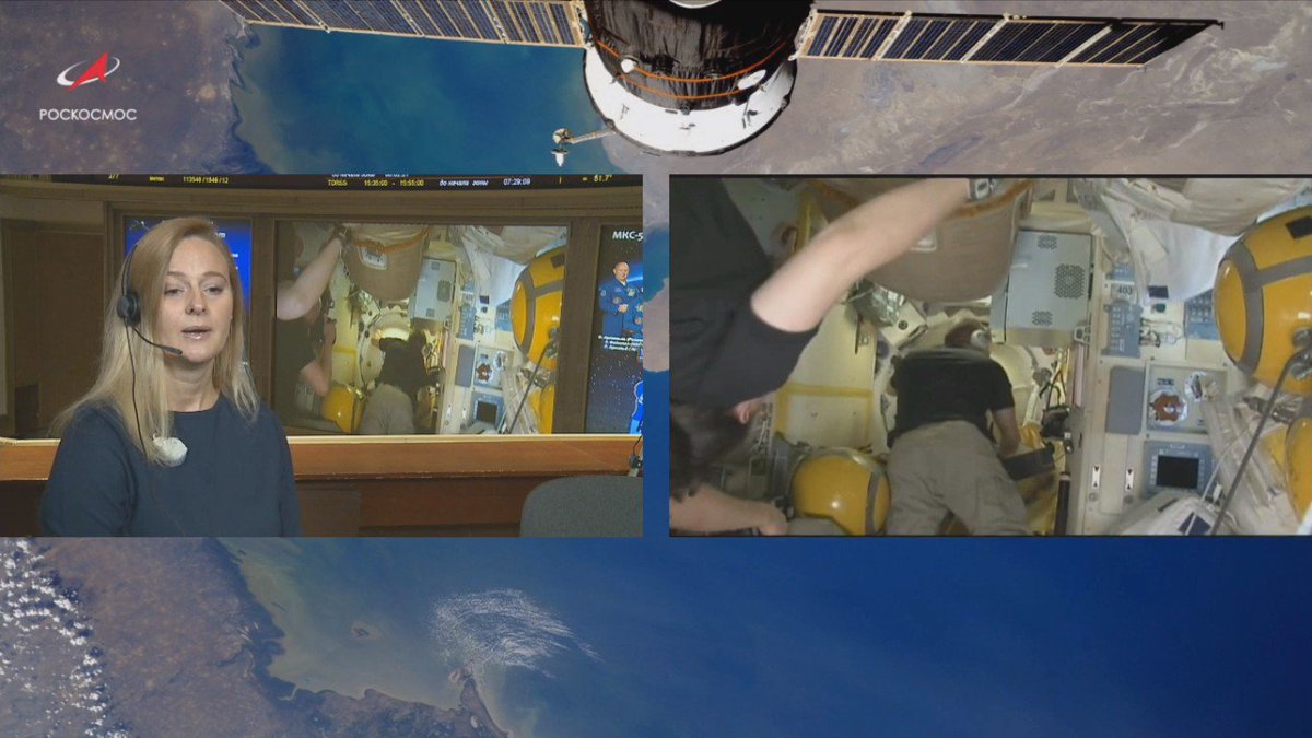 ЦитироватьЭкипаж "Союза" попрощался с остающимися на МКС космонавтами