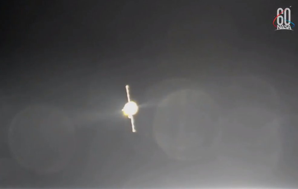 A final departure rocket firing by the Soyuz MS-08 crew capsule has been accomplished after Feustel completed his photo survey of the International Space Station. The Soyuz is now backing away from the station, setting the stage for a deorbit burn at 6:51 a.m. EDT (1051 GMT).