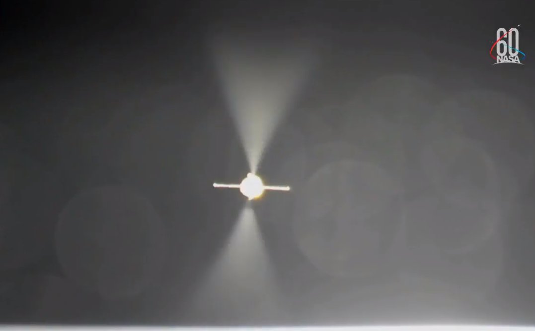 There's Soyuz, nearly complete with the flyaround. Lots of thruster firings and a roll. Stationkeeping, allowing Drew to get back into the descent module and then the departure burn. Deorbit burn at 6:51 Eastern.