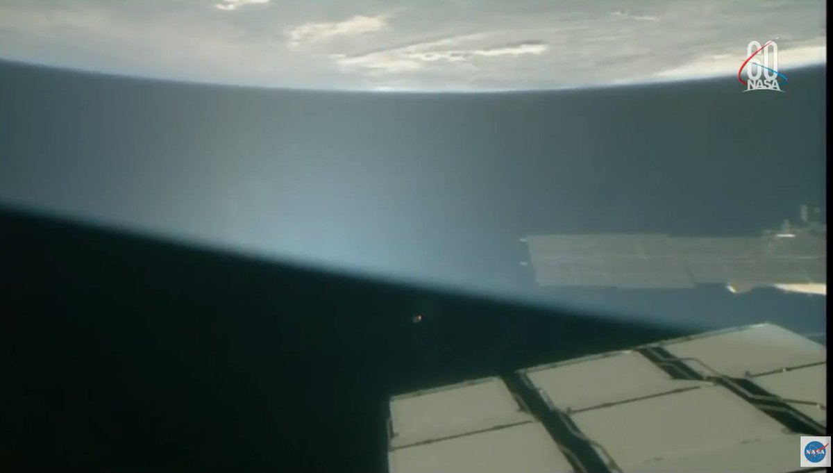 Soyuz MS08: Photo survey is complete; the Soyuz is now backing away from the space station and departing the area; de-orbit rocket firing planned for 6:51am to set up a landing in Kazakhstan