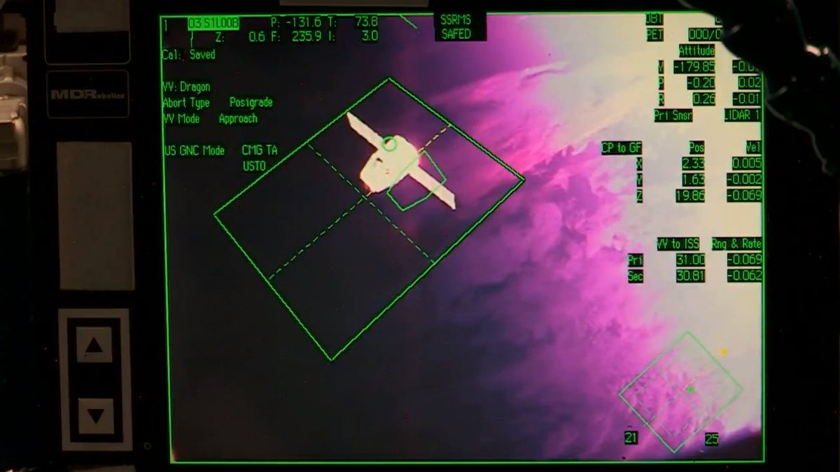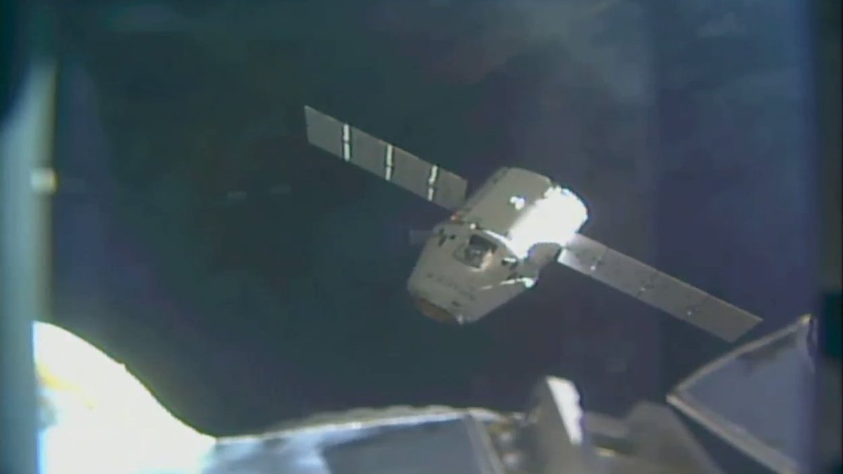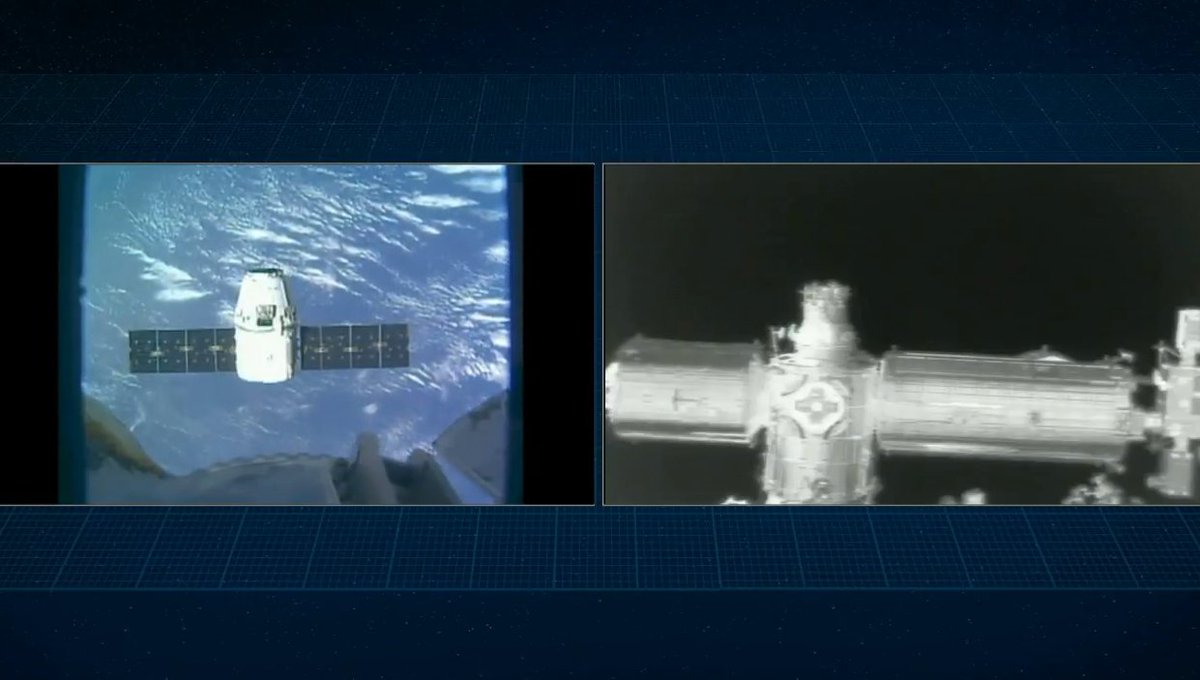 .The @SpaceX #Dragon slowly approaches the station where it will hold at 30 meters before it begins it final approach to the 10 meter capture point.