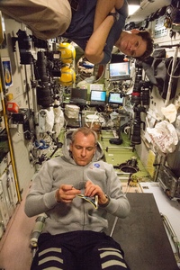 Today a crewmember doffed the circadian Rhythms hardware and downlinked the telemetry data. Circadian Rhythms investigates the role of synchronized circadian rhythms, or the "biological clock," and how it changes during long-duration spaceflight. Researchers hypothesize that a non-24-hour cycle of light and dark affects crewmembers' circadian clocks.