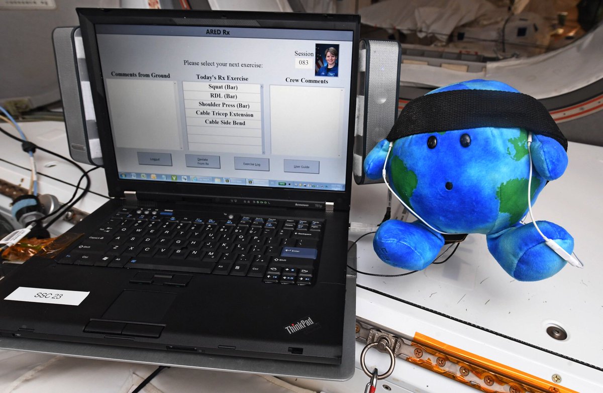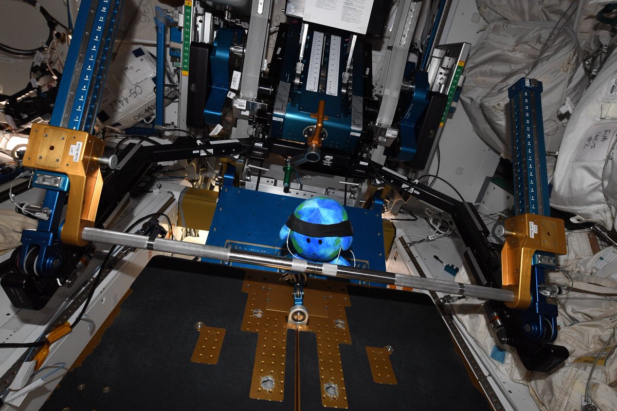 Earth's 3rd day started with getting the blood (plasma?) pumping! First the treadmill, then weights - he even got some deadlifts in with me. It is important to exercise every day, not just for our muscles but also to protect our bones from losing density in microgravity.