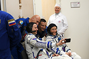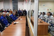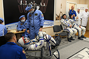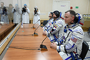 The station normally is staffed by a crew of six, but the crew rotation schedule was thrown off last Oct. 11 when a Soyuz rocket carrying Ovchinin and Hague suffered a catastrophic malfunction two minutes after launch when one of four strap-on boosters failed to separate cleanly from the rocket's central core stage.