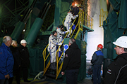The Soyuz MS-12/58S spacecraft launched Thursday originally was expected to take off in April with commander Oleg Skripochka, a United Arab Emirates guest cosmonaut and Koch, who was in training as the flight's board engineer, or co-pilot. But in the wake of the abort, the flight was moved up and Ovchinin and Hague were assigned to join Koch with Hague taking over co-pilot role.