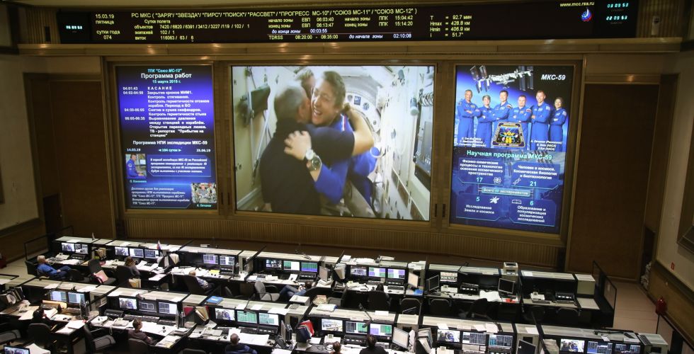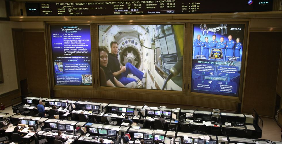 The Russian mission control in Korolev: #Soyuz MS-12 docking time at #ISS is 04:01:43 Moscow Time (9:01 p.m. EDT)...