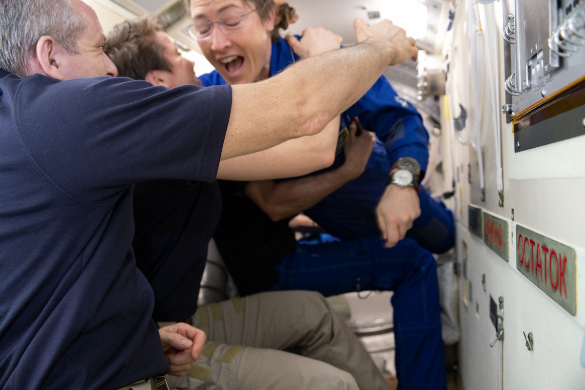Welcome to our new crewmates, @AstroHague, @Astro_Christina and Alexey! Happy to have two of my 8-ball classmates as roommates on @Space_Station.