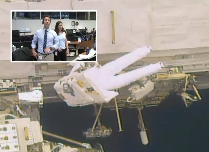 После успешного отделения панели астронавты продолжили монтаж третьего и последнего в рамках задания аккумулятора на опорном сегменте P4 фермы МКС, к которой крепится пара солнечных панелей.