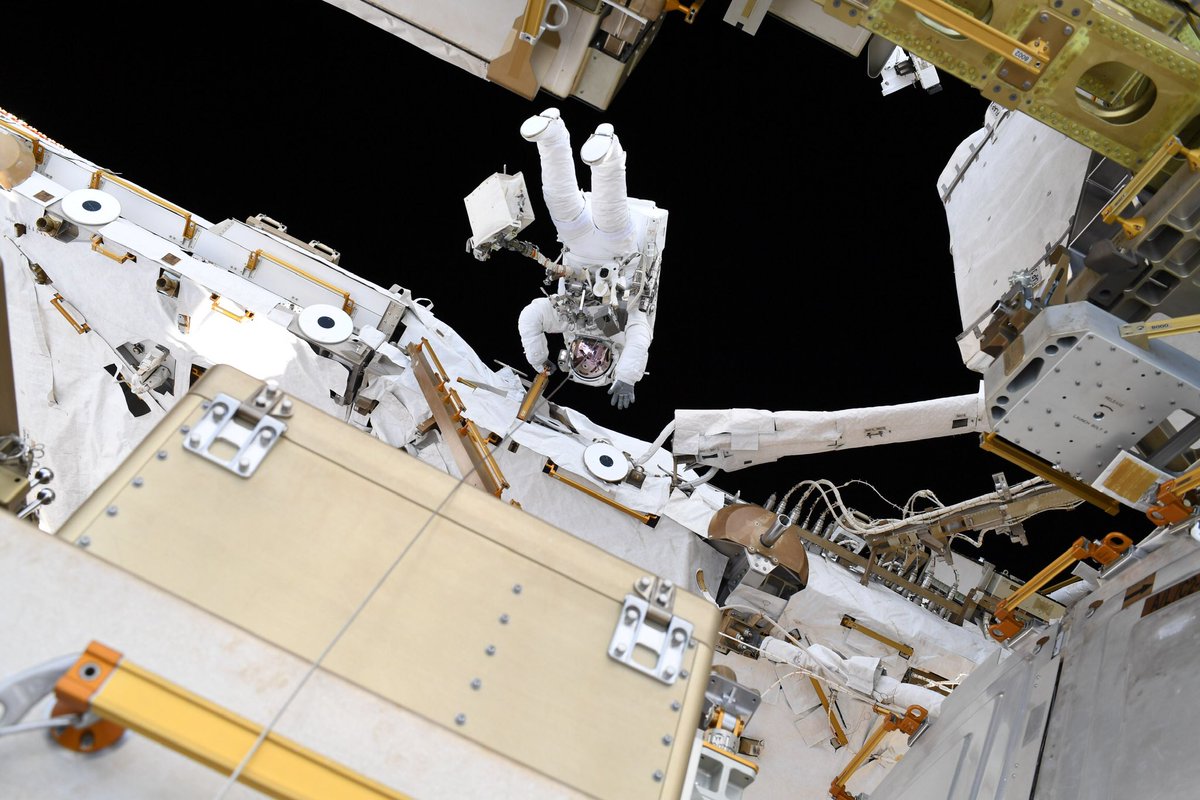 Today Anne McLain (EV-1) and Nick Hague (EV-2) exited the Joint Airlock and performed US EVA #52 (Lithium Ion Battery R&R EVA #1) with a Phased Elapsed Time (PET) of 6h 39m. The primary purpose of this EVA was to facilitate the installation of new P4 Li-Ion batteries and completed tasks included: