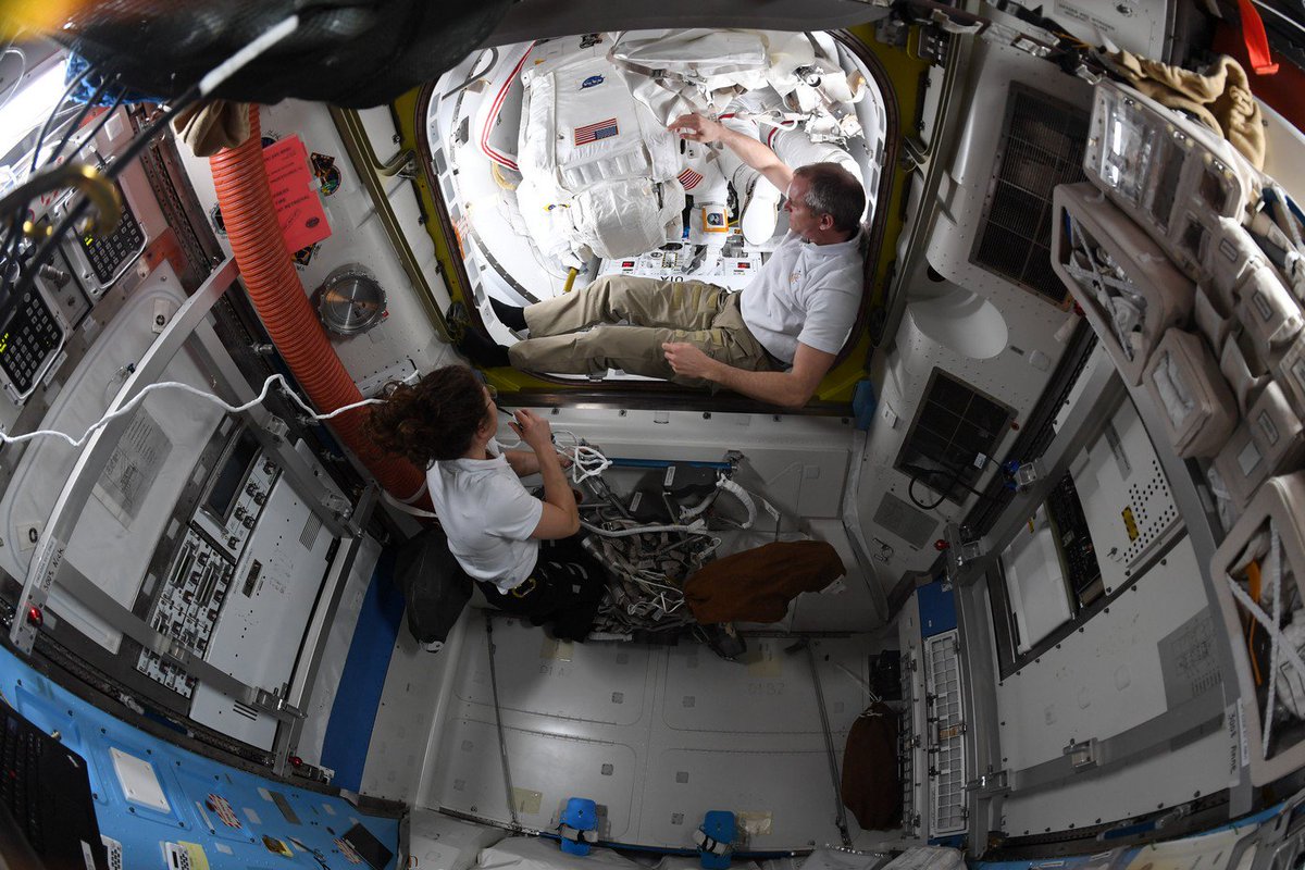 Koch had been scheduled to conduct this spacewalk with astronaut McClain, in what would have been the first all-female spacewalk. However, after consulting with McClain and Hague following the first spacewalk, mission managers decided to adjust the assignments, due in part to spacesuit availability on the station. McClain learned during her first spacewalk that a medium-size hard upper torso – essentially the shirt of the spacesuit – fits her best. Because only one medium-size torso can be made ready by Friday, March 29, Koch will wear it.