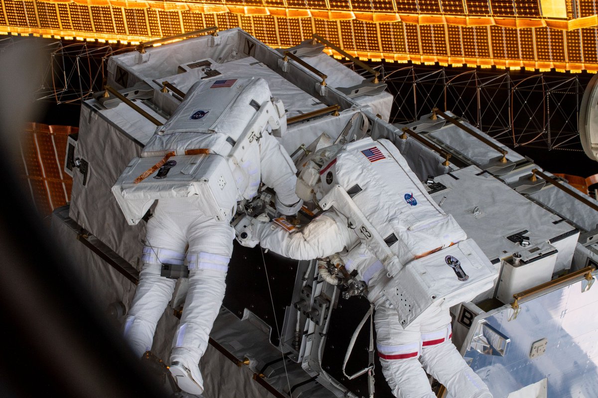 McClain and Hague began their six-hour 39-minute excursion at 8:01 a.m. EDT, floating out of the Quest airlock to kick off the 214th spacewalk since station assembly began in 1998.