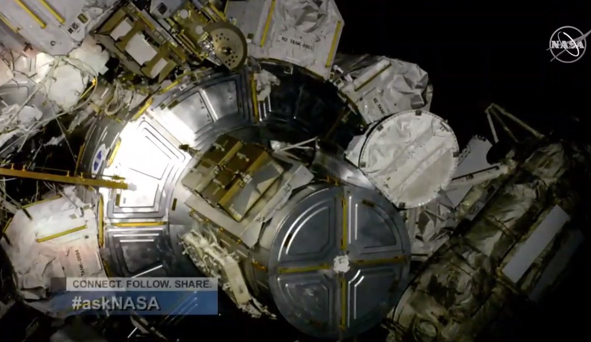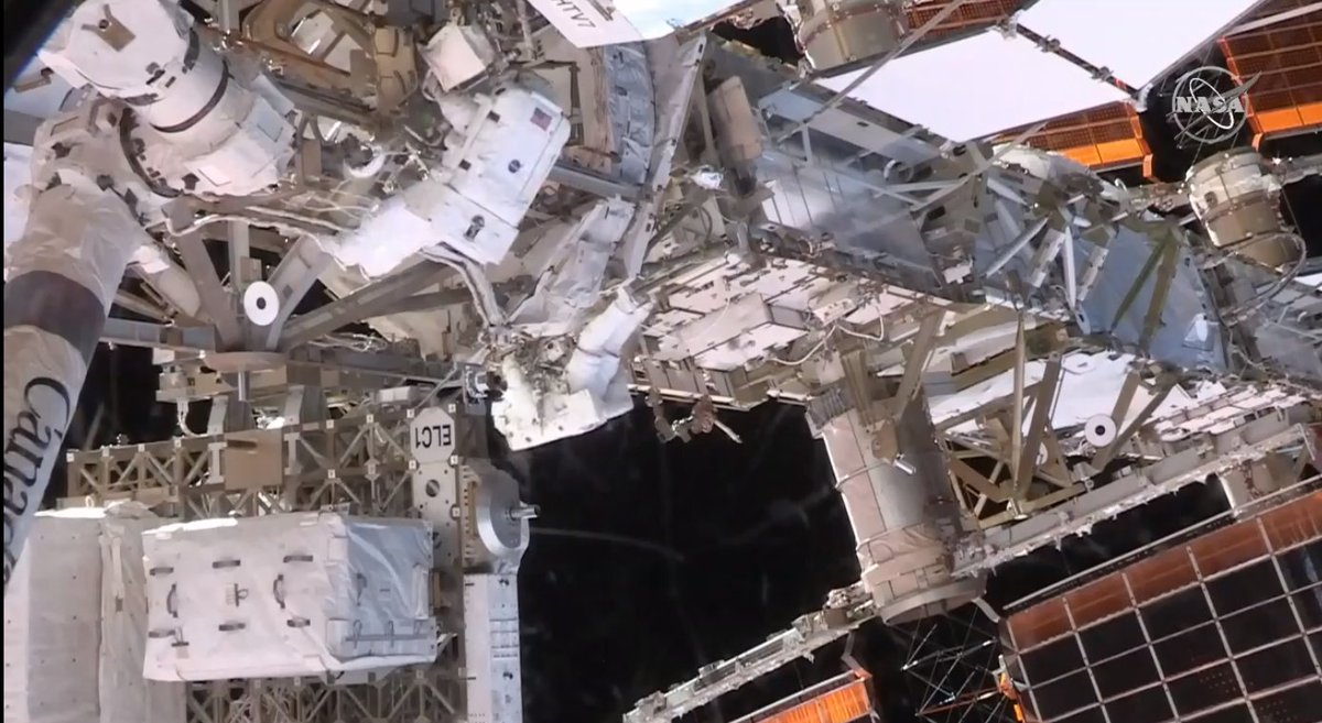 The spacewalk last Friday was aimed at installation of three adapter plates and cable connections to hook up three new li-ion batteries in the inboard IEA on the left side of the power truss. Hague and Koch completed the installation of another three adapter plates and made the necessary connections to three robotically installed li-ion batteries.