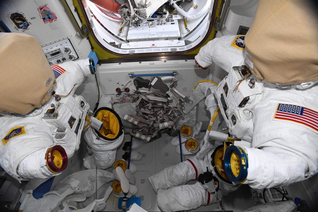 Flight Engineers Anne McClain and David Saint-Jacques are readying their spacesuits and tools for a spacewalk set to begin Monday at 8:05 a.m. EDT. The spacewalking duo will install truss jumpers next week to provide a redundant power source to the Canadarm2 robotic arm.