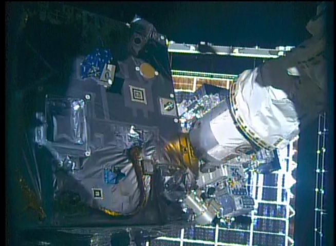 Yesterday afternoon, Robotics Ground Controllers powered up the MSS and then configured the Space Station Remote Manipulator System (SSRMS) and Special Purpose Dexterous Manipulator (SPDM) to start the final stages of the 4A battery cleanup. The team removed the NiH2 battery from the External Pallet (EP) and transferred it to the 4A Integrated Electronics Assembly (IEA). They then ins erted it in to the slot freed up by US EVA 54. Upon completion of installation, they moved back to the EP and transferred the NiH2 battery from the Enhanced ORU Temporary Platform (EOTP) to the empty slot on the EP. Once completed, the team began the Robotics Refueling Mission 3 (RRM3) procedures and stopped in a configuration that protects the MSS from today's controlled methane discharge from RRM3.